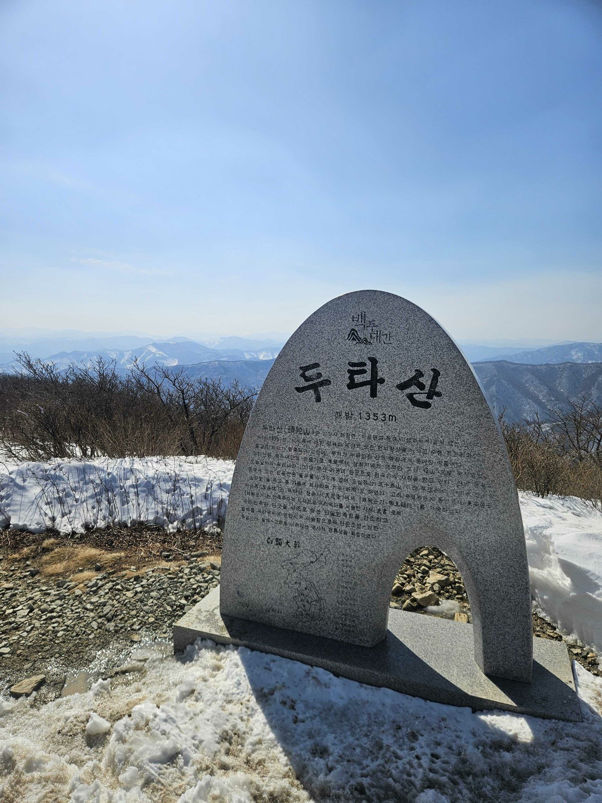 From Mureunggyegok Valley (bus station), the fastest route takes about 3/4 hours to the peak. That is the route to Dutasan Fortress. There is a map at the entrance, showing the route. Find more direction information here.