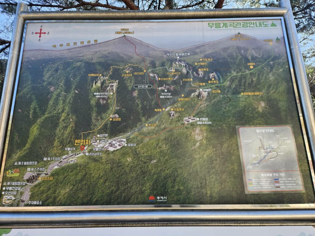 Routes to Dutasan peak from the Mureunggyegok valley.
